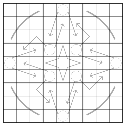 Renban: Digits on the star-shaped line must form a set of consecutive digits.