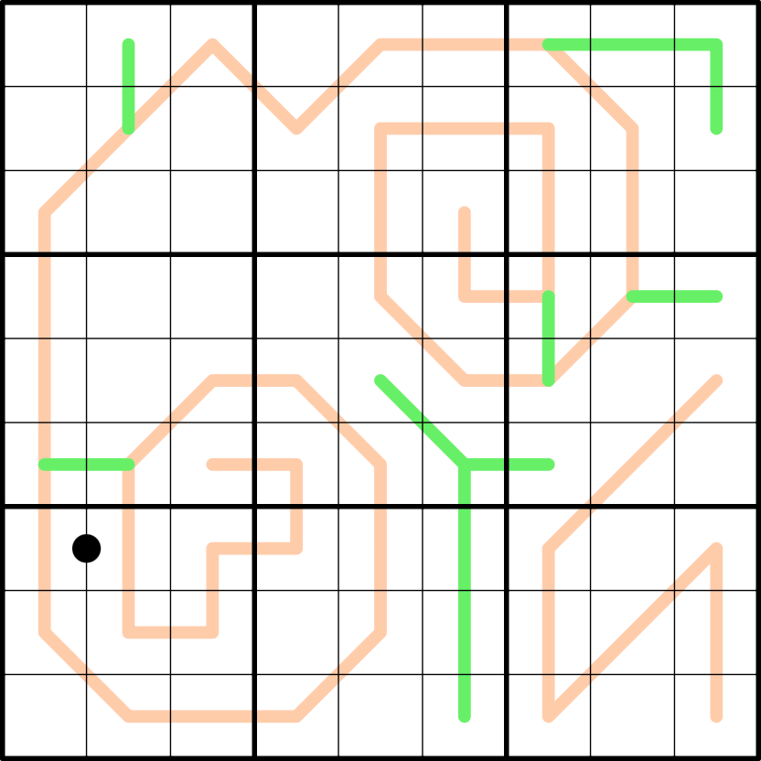 • Entropic Lines: any set of three digits along the peach lines must contain one small digit (1, 2, 3), one medium digit (4, 5, 6), and one large digit (7, 8, 9)..