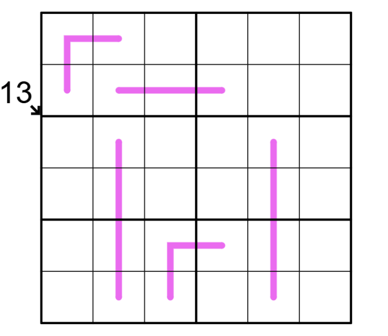 Renban: Pink lines must contain a set of consecutive, non-repeating digits in any order.