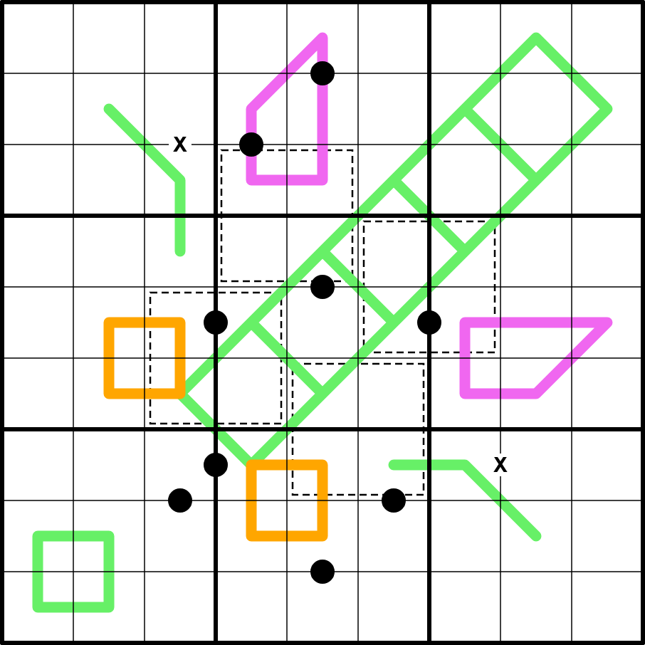 - Renbans - digits on a purple Renban line form a set of consecutive digits in some order.