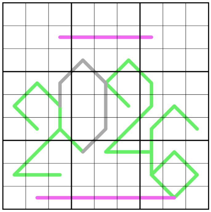 Renban: Pink lines contain sets of distinct consecutive digits in any order.