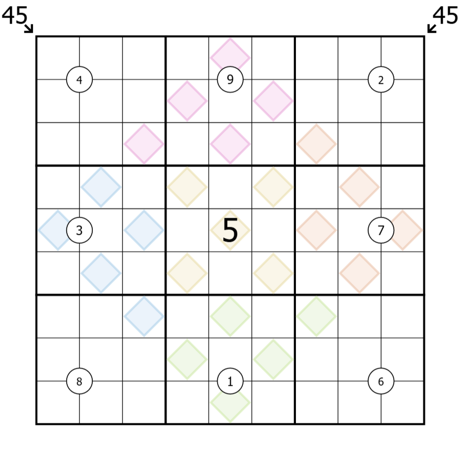 and that propagated nicely into the non diamond cells of the Box center cross then into the corner boxes and once the colours were set, the rest wasn't too hard either.