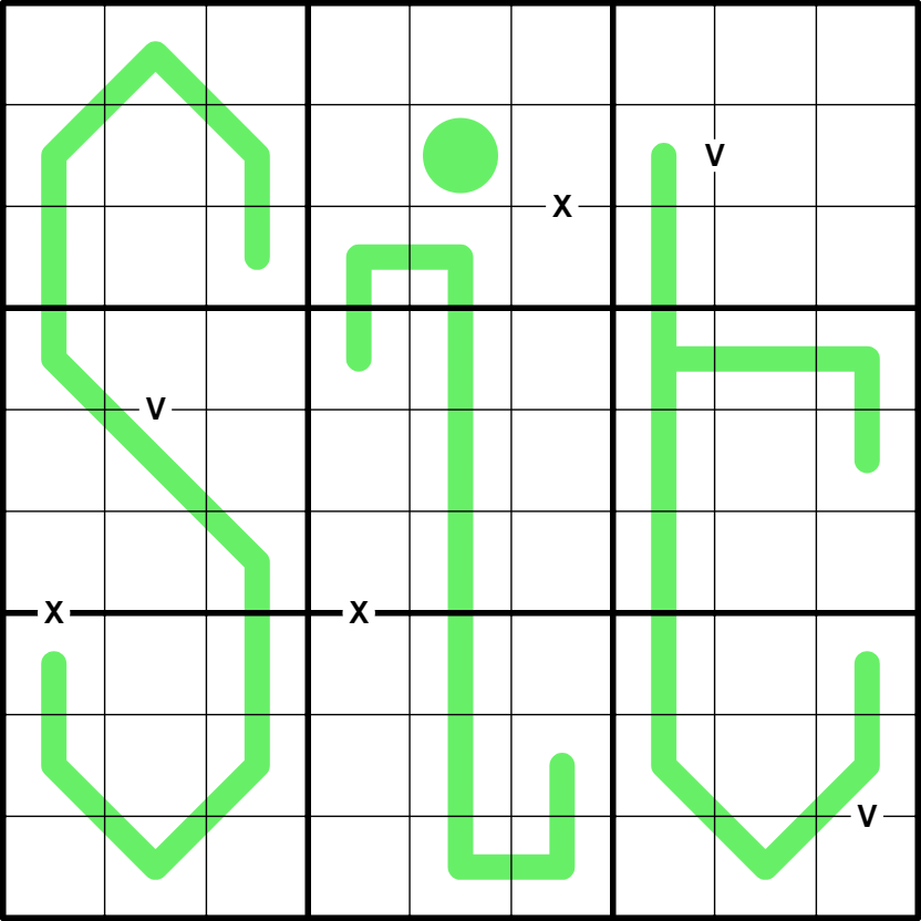 -Consecutive digits along a green line must have a difference of 5 or more.