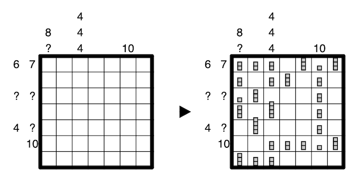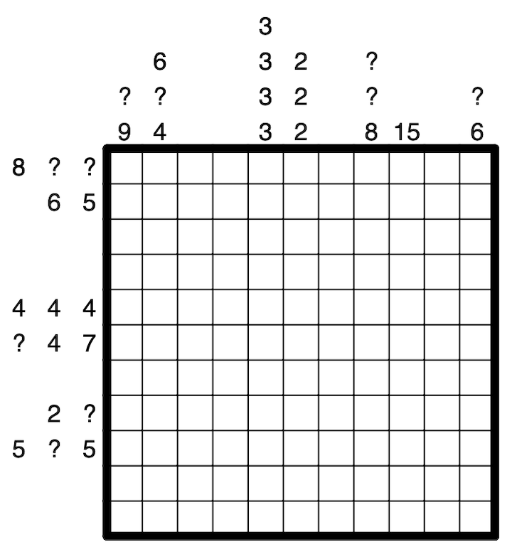 Solution code: The heights of the candles in the bottom two rows with X for empty cell.