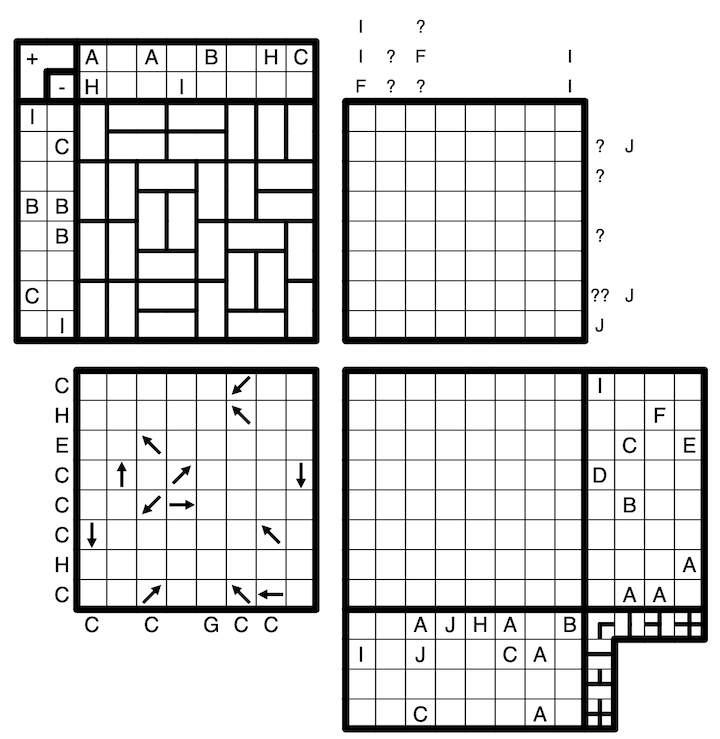 Awesome opening that lead into some great individual puzzles. Three of the genres (all except U-Bahn) were new to me, and it was fun to figure out how they worked. I especially enjoyed the Magnetic Plates and U-Bahn puzzles. Would love to solve another one of these with different genres!