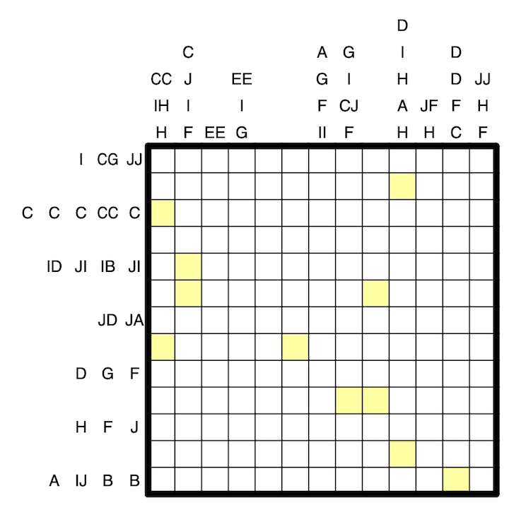 There are two distinct mappings of the numbers 0 to 9 to the letters A to J. Each given letter may refer to either mapping. Tens digits are guaranteed to be nonzero.