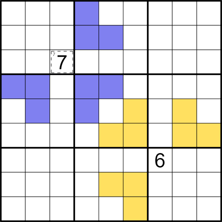 Any digit inside a cage can not be separaded by a king's or knight's move (in chess) from the same digit.
