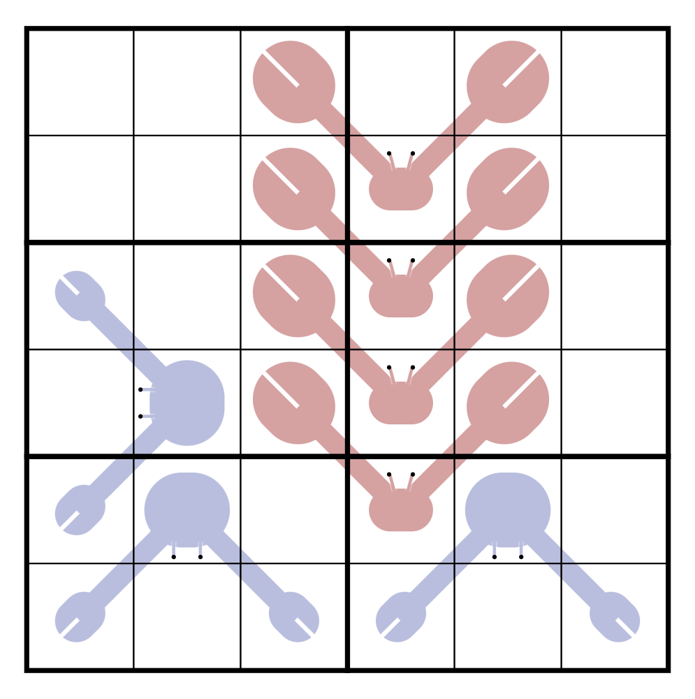 Each hermit crab has grown too big for its shell, and must leave it behind and walk to a vacant shell with a larger digit (possibly one vacated by another crab). Crabs move orthogonally, can't cross piles of rocks, and no cell is entered more than once.
