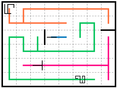 • Clues indicate the exact way in which each line of a figure are shaped, not allowing rotation or reflection. However, the length of each line segment in the figure can be expanded or reduced, as long as it is at least 1.