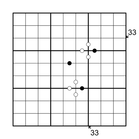 • Digits separated by a white dot have a difference of one, while digits separated by a black dot are in a 1:2 ratio. Not all dots are given.