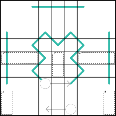 Modularity/Parity lines: the teal lines act as modularity lines: each group of three adjacent cells along a line must contain a digit from (1,4,7), a digit from (2,5,8), and a digit from (3.6.9). In addition, digits along a teal line must alternate between even and odd digits.