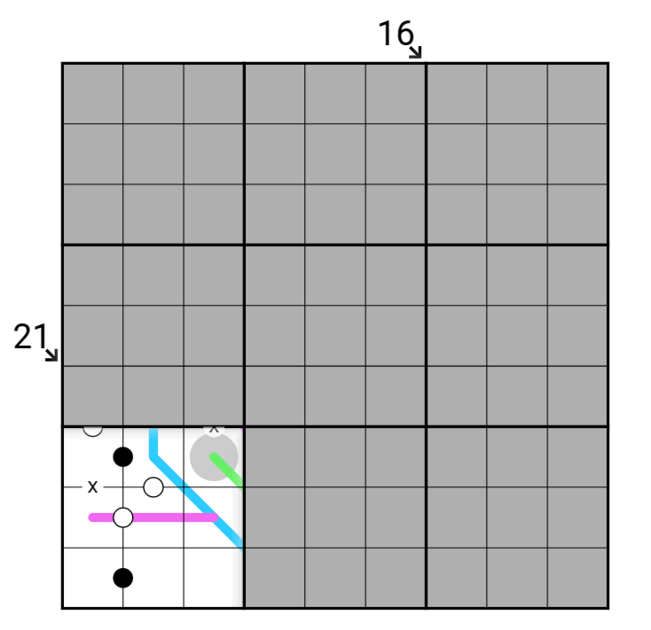 • Digits along a blue line create a sumline where the sum of digits on a line within a particular 3x3 box must be the same for all the boxes the line passes through.