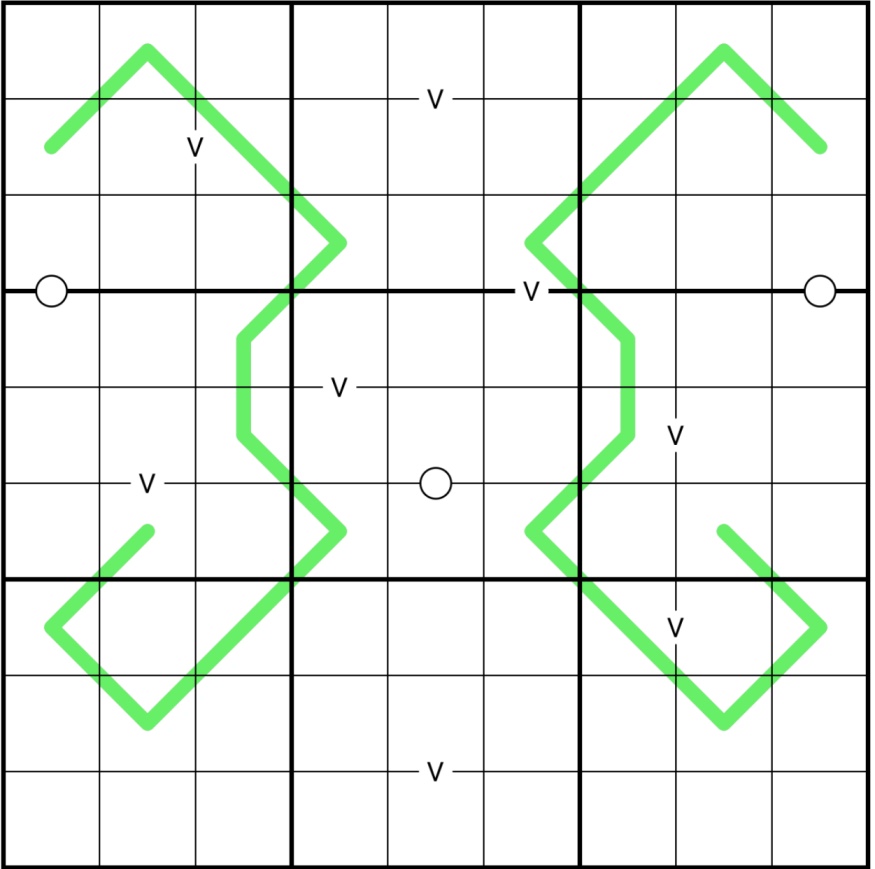 Neighbouring digits on a green line must have a difference of at least 5. Green lines are also palindromes and must read the same in both directions.