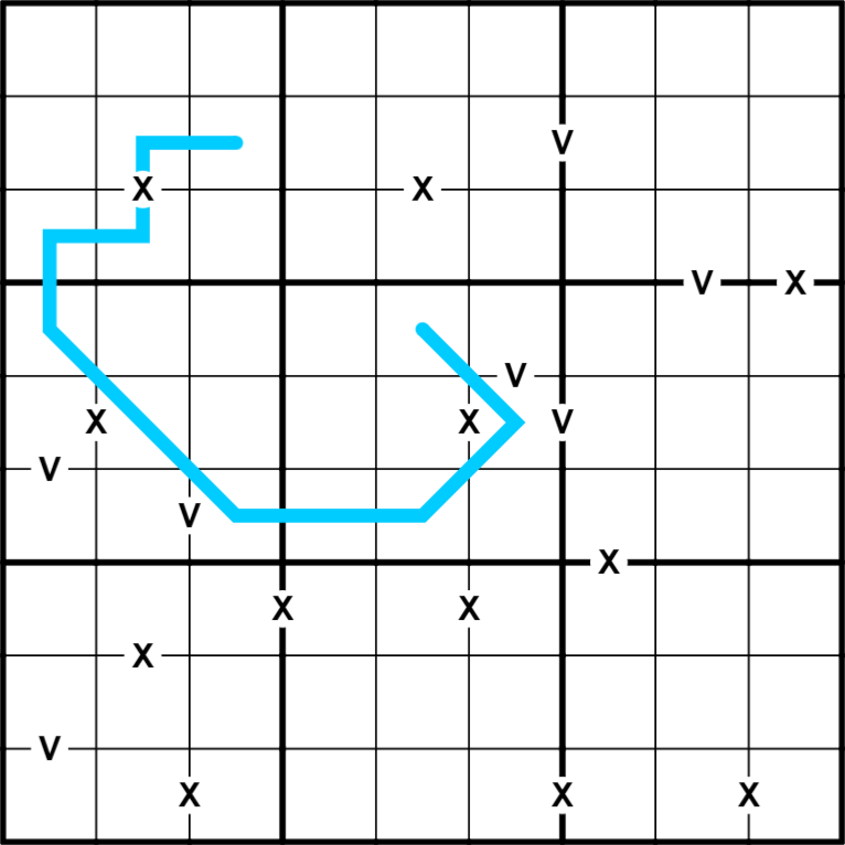 All X's and V's are given.