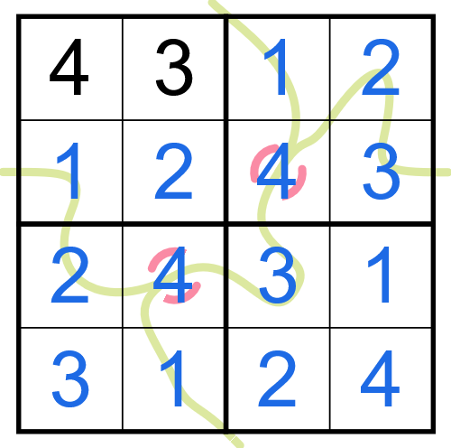- Each edge of the grid is considered to be adjacent/orthogonal to its opposite edge. (For example, r3c1 is considered orthogonally adjacent to r3c9.)