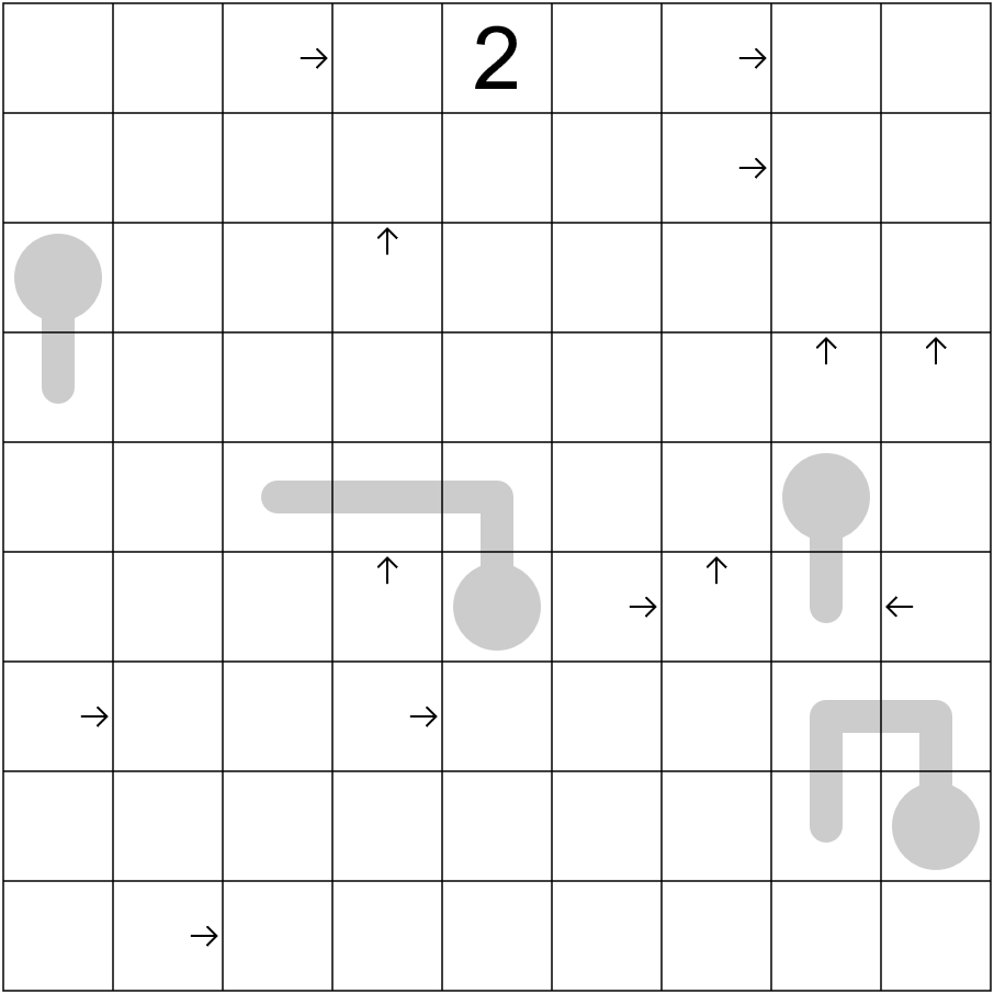 A digit on an arrow shows the number of different regions in the indicated direction, excluding the region containing the arrow.
