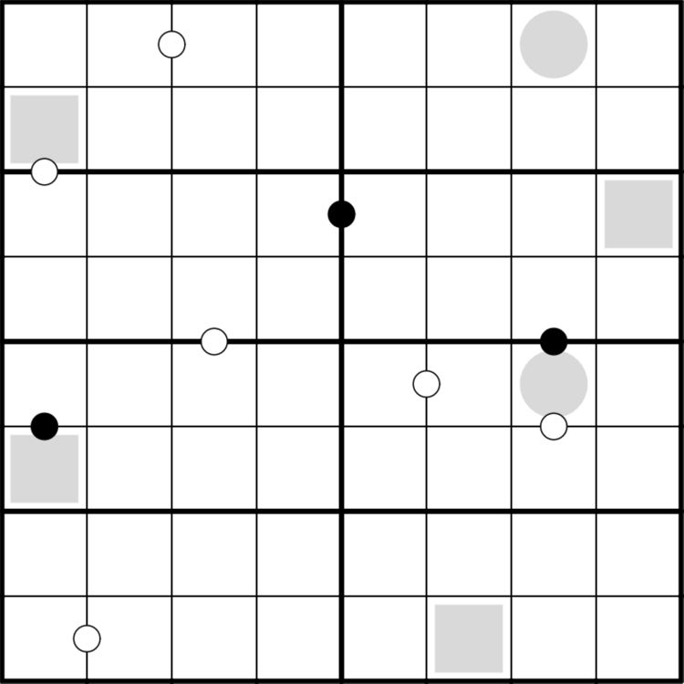 Even/Odd: A cell with a gray square contains an even digit. A cell with a gray circle contains an odd digit.