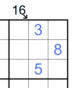 Clues outside the grid are the sum of the first X digits in the corresponding direction. These sums may bounce of the edges of the grid and continue at a 90 degree angle if X is larger than the number of cells in the diagonal.