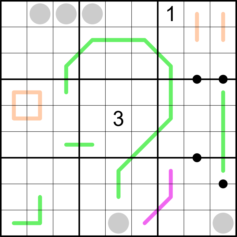 It is obvious where the inspiration for this puzzle came from; you can plainly see by looking at it... hopefully you enjoy - please leave a comment if you did? It uses quite a few rules, but to that I say: "oh well"!