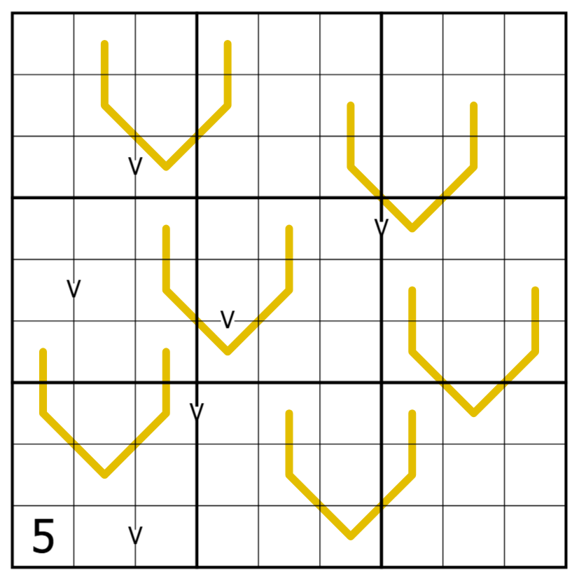 Entropic line: every three consecutive cells along the line must contain a low digit (1,2,3), a middle digit (4,5,6) and ahigh digit (7,8,9).