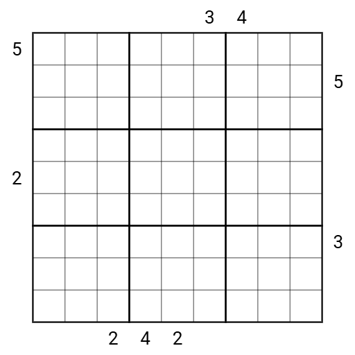 Skyscrapers: Each digit represents the height of a building. Clues outside the grid indicate the number of buildings visible from the corresponding direction. A taller building will hide any shorter buildings behind it.