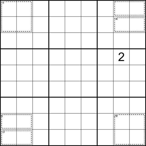 Killer: Ziffern dürfen sich innerhalb eines Kästchens nicht wiederholen und müssen die Summe in der oberen linken Ecke ergeben.