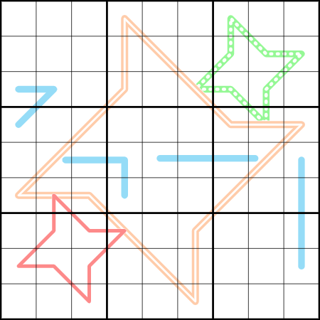 - Region Sum Lines: Region borders separate the thicker blue lines into segments of equal sum.