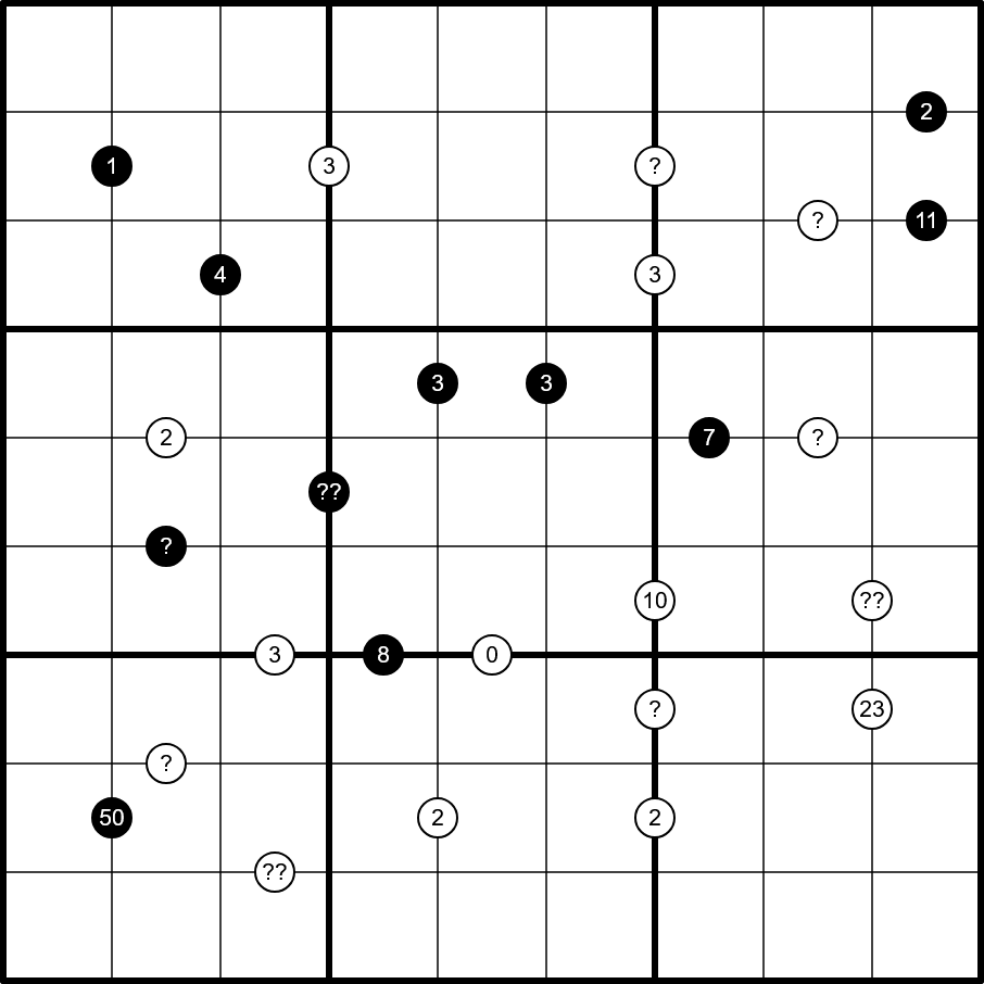 • Cells joined by a white dot have values with difference equal to the number on the white dot.