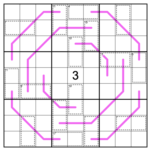 Cages: Digits in cages must sum to the value shown in the upper left corner of the cage.