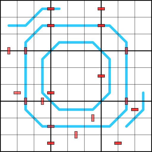 Sum Line: Box borders split blue lines into sections, and the digits on those sections must sum to the same value. If a line has multiple sections within a box, these sections are summed separately.