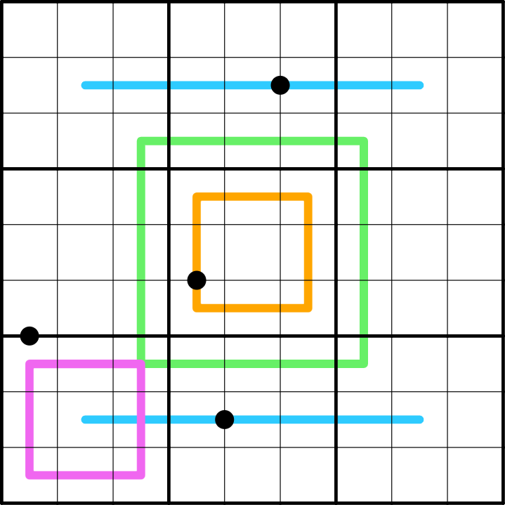 Region sum line: (blue lines) Box borders divide a blue line into segments which have the same sum. Different lines may have different sums.
