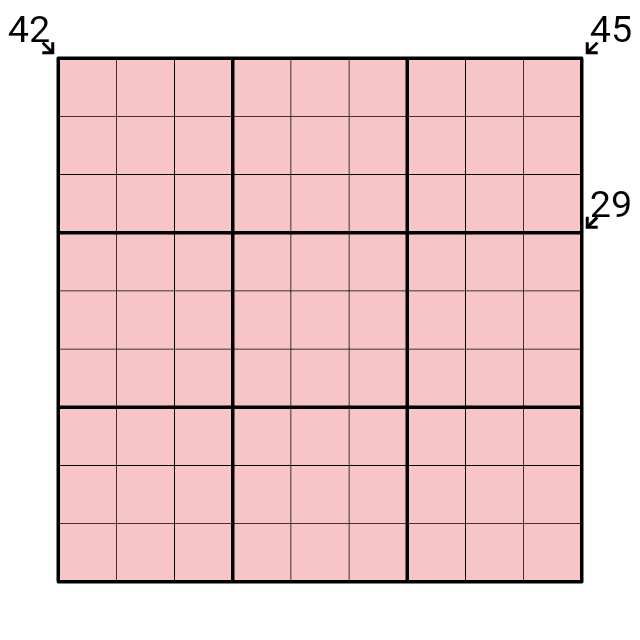 Es gelten die normalen Sudoku-Regeln. Felder, die einen König und einen Springer voneinander entfernt sind, dürfen nicht dieselbe Ziffer enthalten. Ein markiertes Feld in Spalte X gibt die Spalte an, in der X in der Zeile erscheint. Diese Regel gilt für alle Felder. Ziffern entlang der markierten Diagonale ergeben zusammen die angegebene Summe außerhalb des Rasters.
