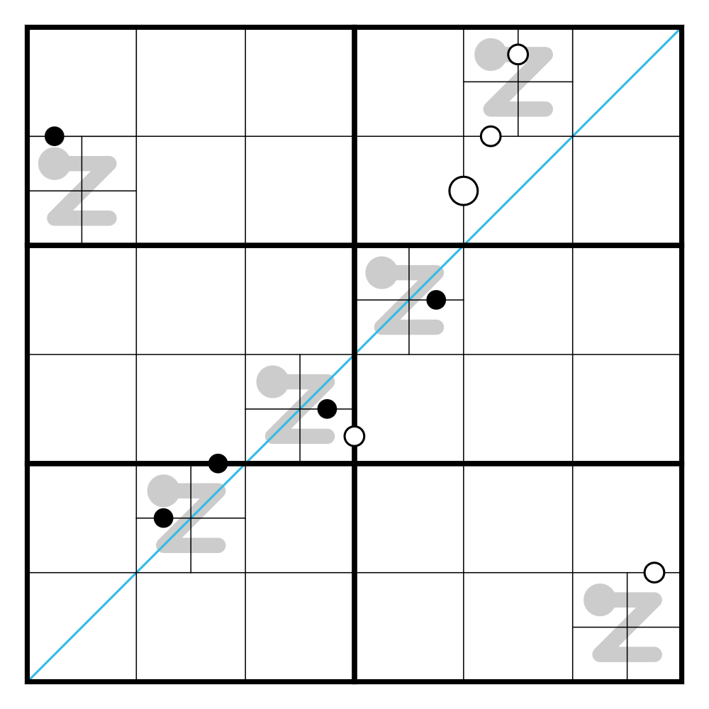 Cool puzzle, very fun. Forunately this was quite easy as I suspect a more difficult puzzle with this setup would get annoying do to being hard to notate the small cells.