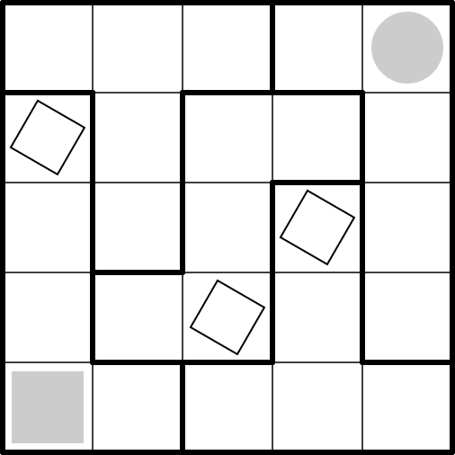Friendly Horses: cells marked by a tilted square are friendly horses. A friendly horse indexes how often it sees its counterpart within a chess-knight's move INCLUDING the marked cell itself.