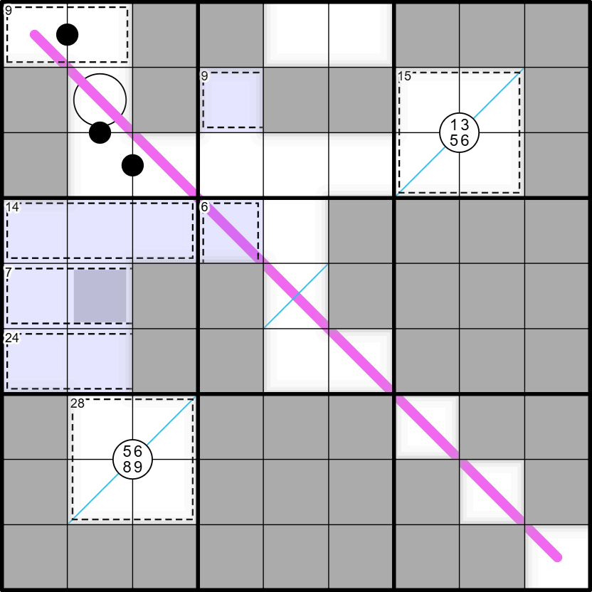 • Digits in a cage do not repeat and sum to the given total. The blue Killer cages are all the same size (3 cells.) Cages do not overlap.