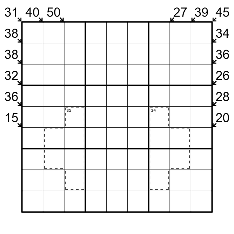 Little Killer Sum: The numbers outside the grid give the sum of the digits along the indicated diagonals. Digits may repeat along this diagonals.
