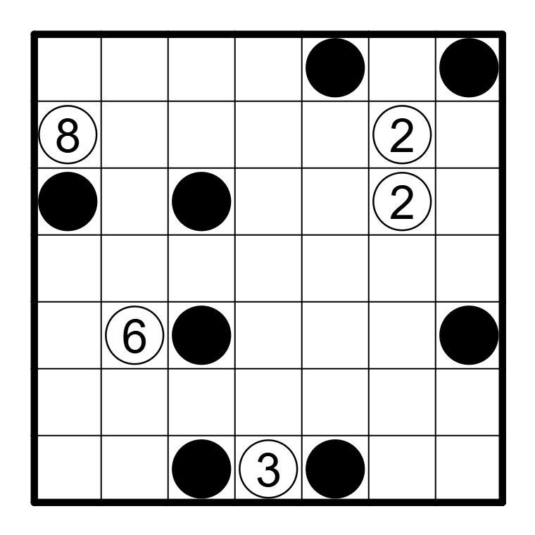 Black circles represent boulders, which cannot be moved. Lines may not overlap boulders.
