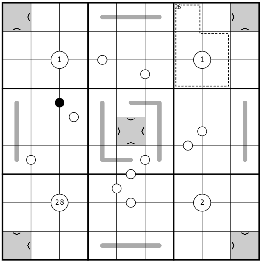 Digits connected with a white dot are consecutive, digits connected with a black dot are in a 1:2 ratio. Not all dots are given.