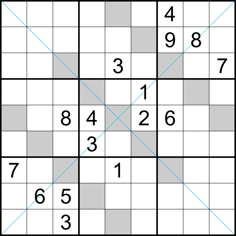 • Slot Machine: Digits along the gray stripes must follow the same cyclic sequence. (For example, if the digits are 12345 on one stripe, they could be 34512 on another stripe, but not 14325 or 34521.)