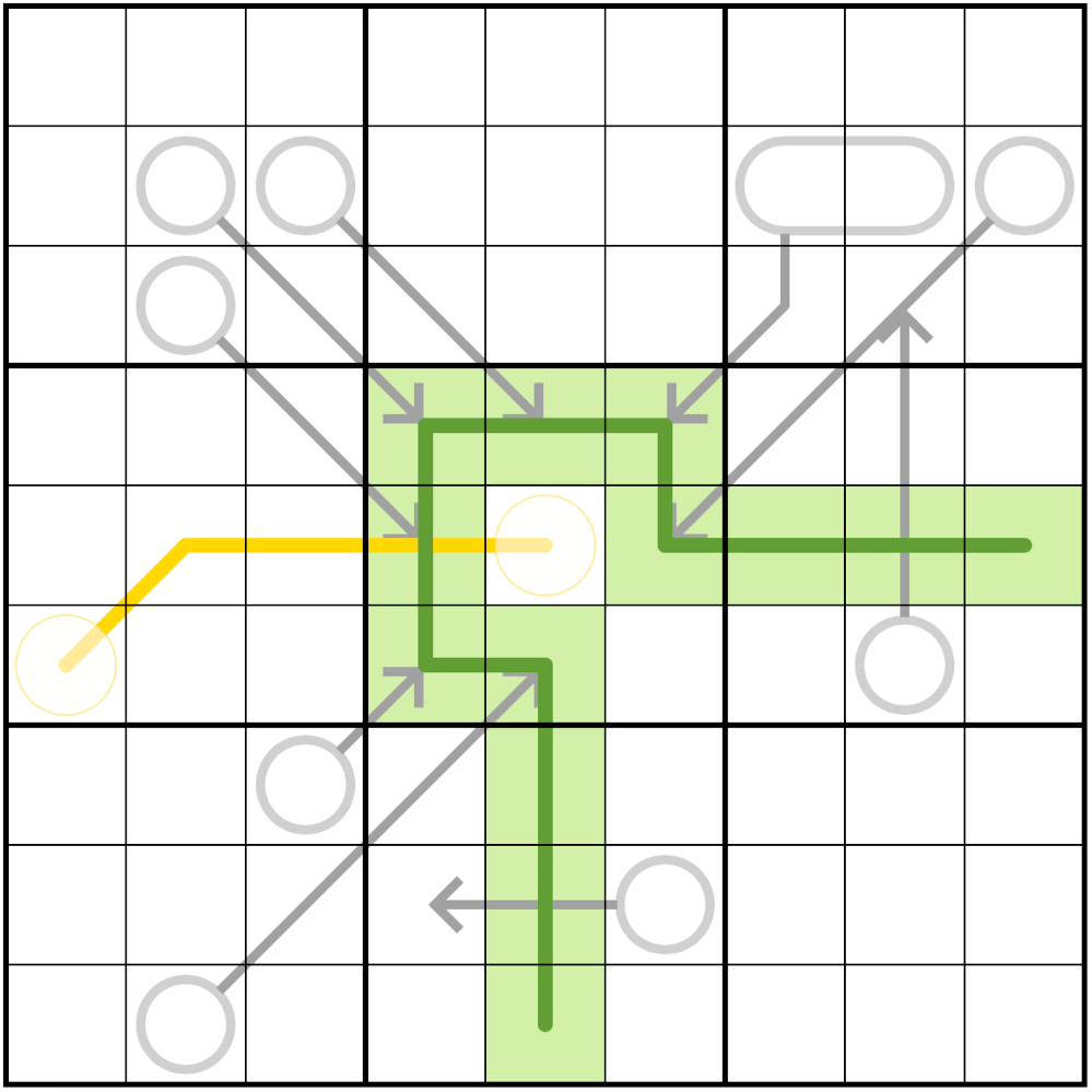 • Arrows. Digits along an arrow must sum to the number in the attached circle or pill (read from left to right). Digits may repeat on an arrow if allowed by other rules.