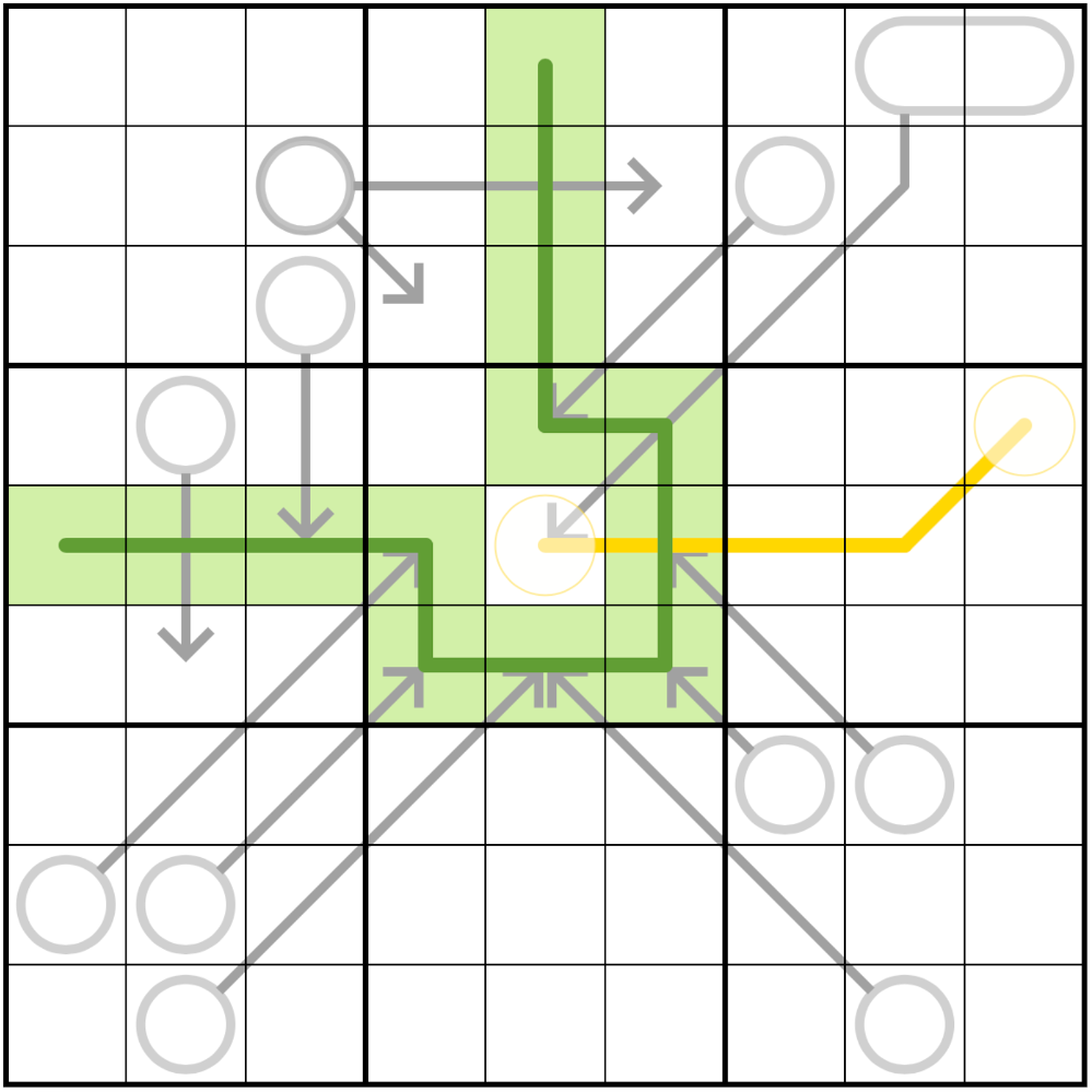 • Arrows. Digits along an arrow must sum to the number in the attached circle or pill (read from left to right). Digits may repeat on an arrow if allowed by other rules.