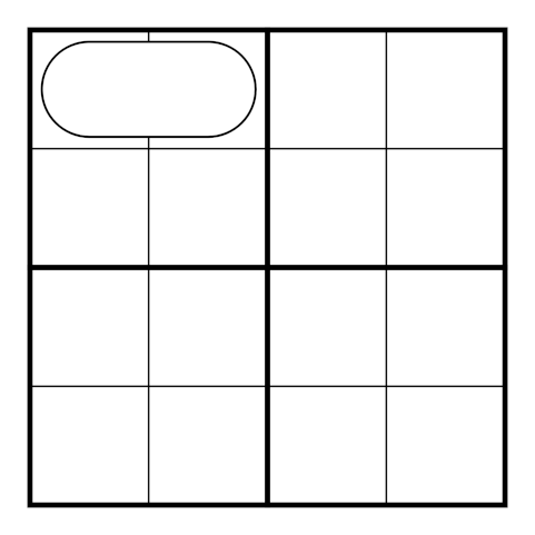 • Standard 4x4 sudoku rules apply: The digits 1 through 4 appear in every row, column, and 2x2 box.