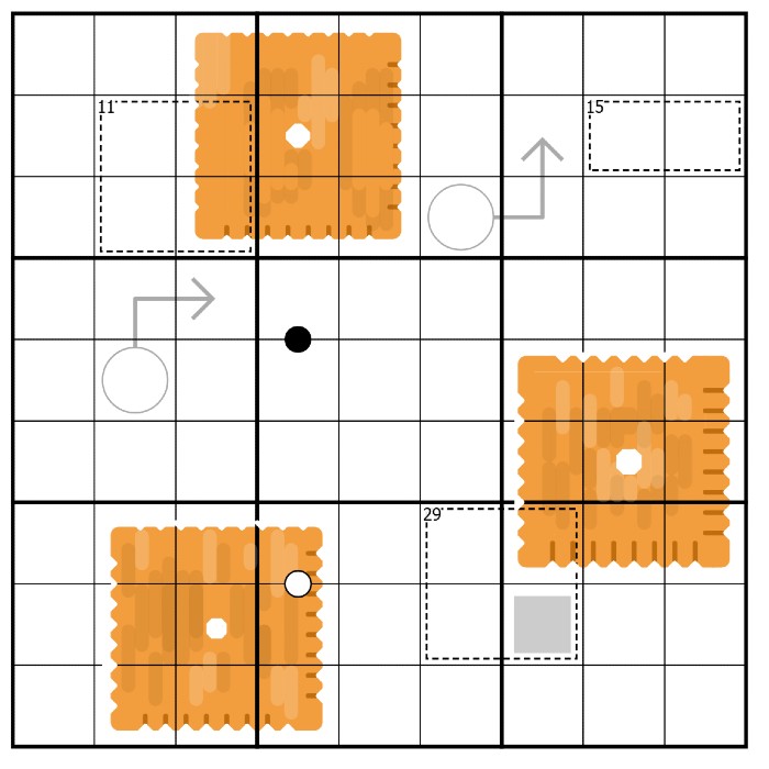 - Cloned Regions: The orange square Cheez-Its represent 3 cloned regions of the grid which contain the same digits in the same relative positions. Digits must not repeat in each cloned region. For the avoidance of doubt, this means each cloned region will have the digits 1-9 once each.