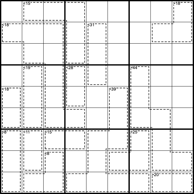 It must have been really difficult to set a puzzle with this constraint, and indeed it was very hard to solve. I kept being amazed that it actually works and that I could keep making slow progress with so many degrees of freedom.