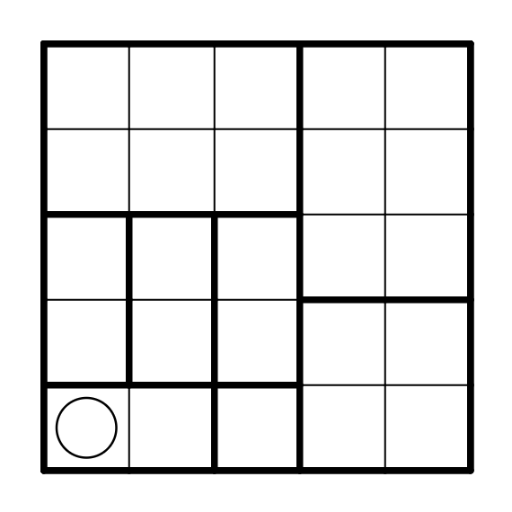 4. A straight line of cells of the same color must not cross more than one region border.