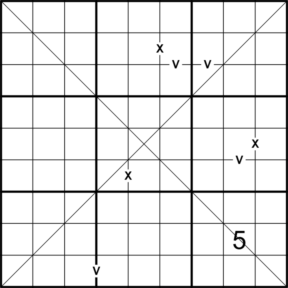 1) Digits may not repeat on the positive and the negative diagonal; and