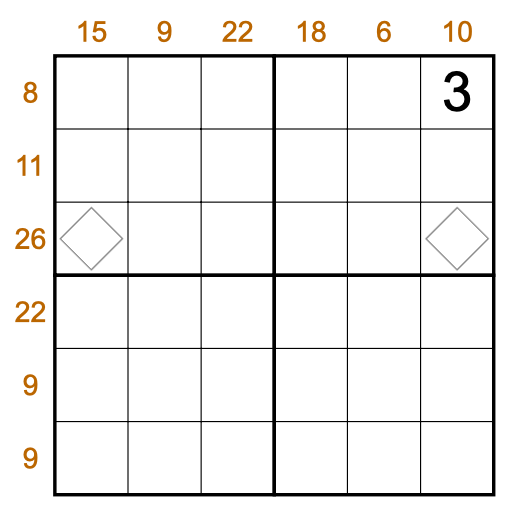 • Extreme Crusts: Cells containing diamonds can only contain a 1 or a 9.