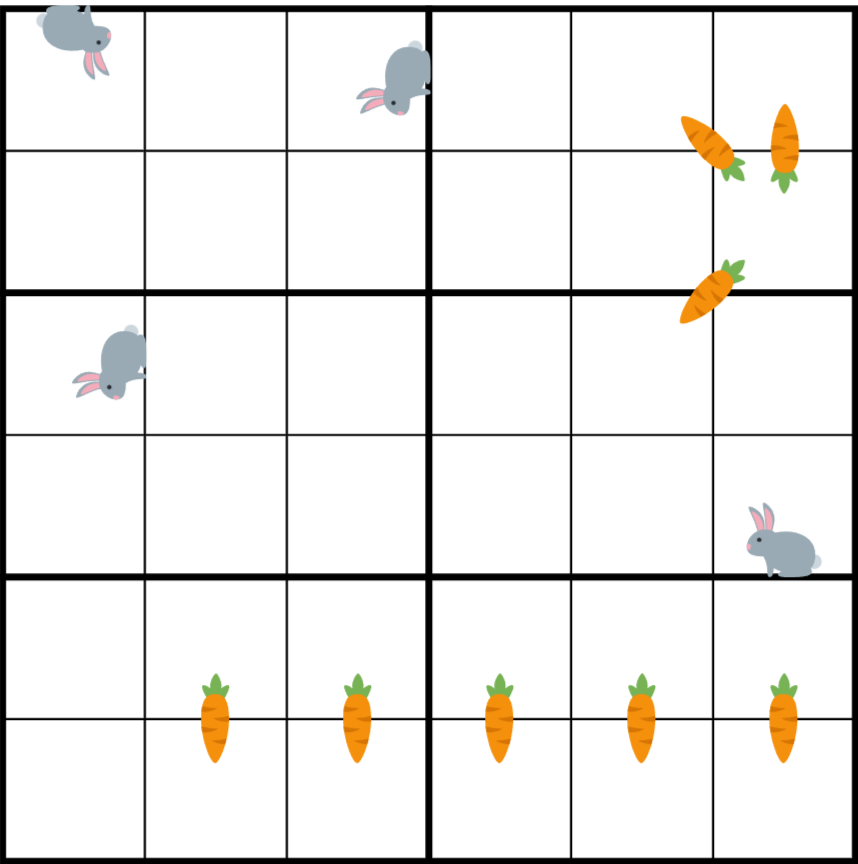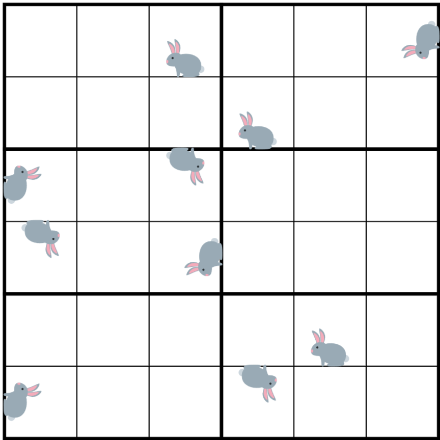 - Rabbits never hop to the starting or ending position of another rabbit.