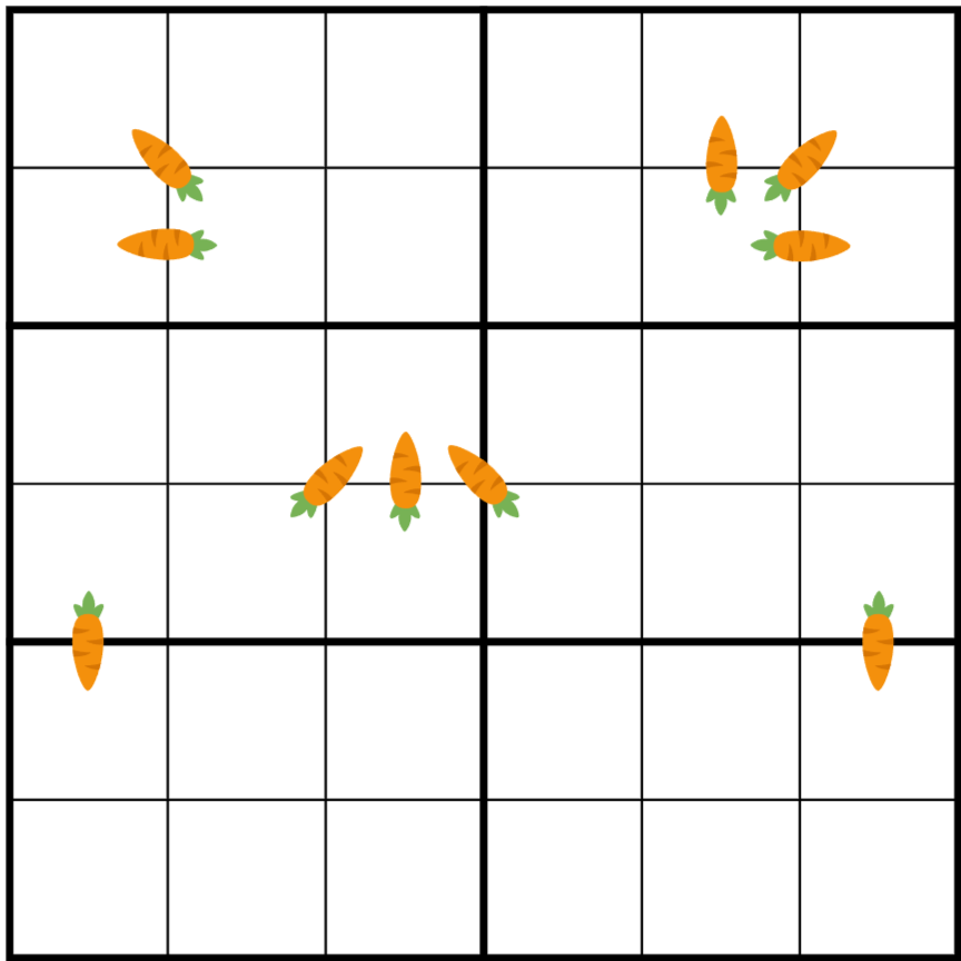 - Each carrot lies between an even digit and an odd digit, and points to the smaller of the two digits.
