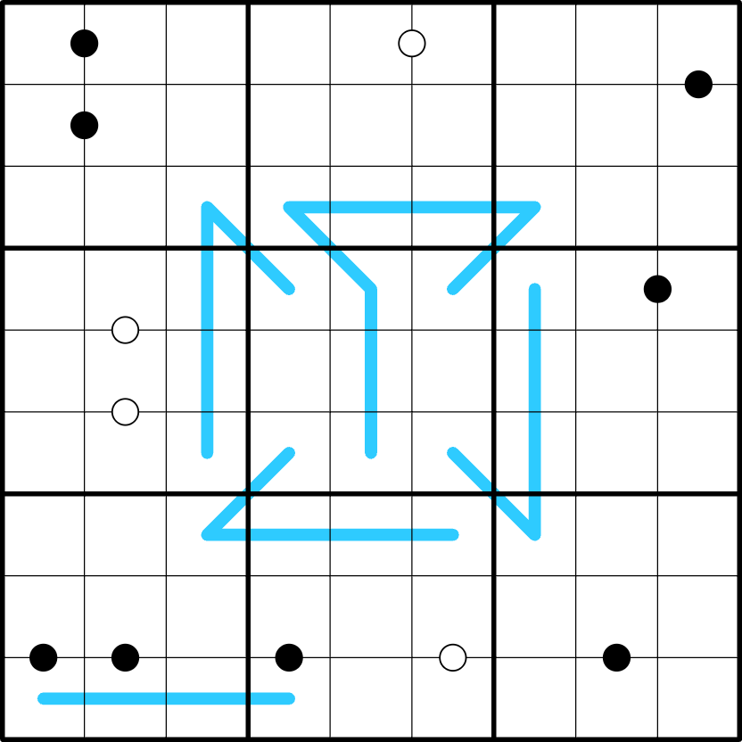 Beautiful setting and logic, Clever use of the 1:2 dots and their interplay with the lines.